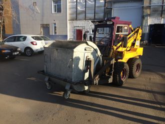 - При использовании кантователя баков, минипогрузчик может разгружать мусорные баки в кузов грузового транспорта.